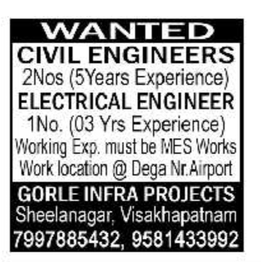 Wanted Staff at Gorle Infra Projects.