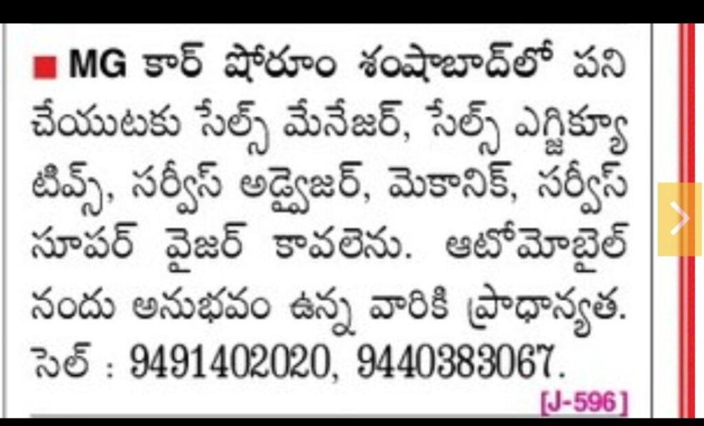 Wanted staff at MG Car Show Room.