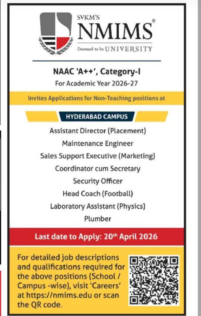 Wanted Staff at NMIMS.