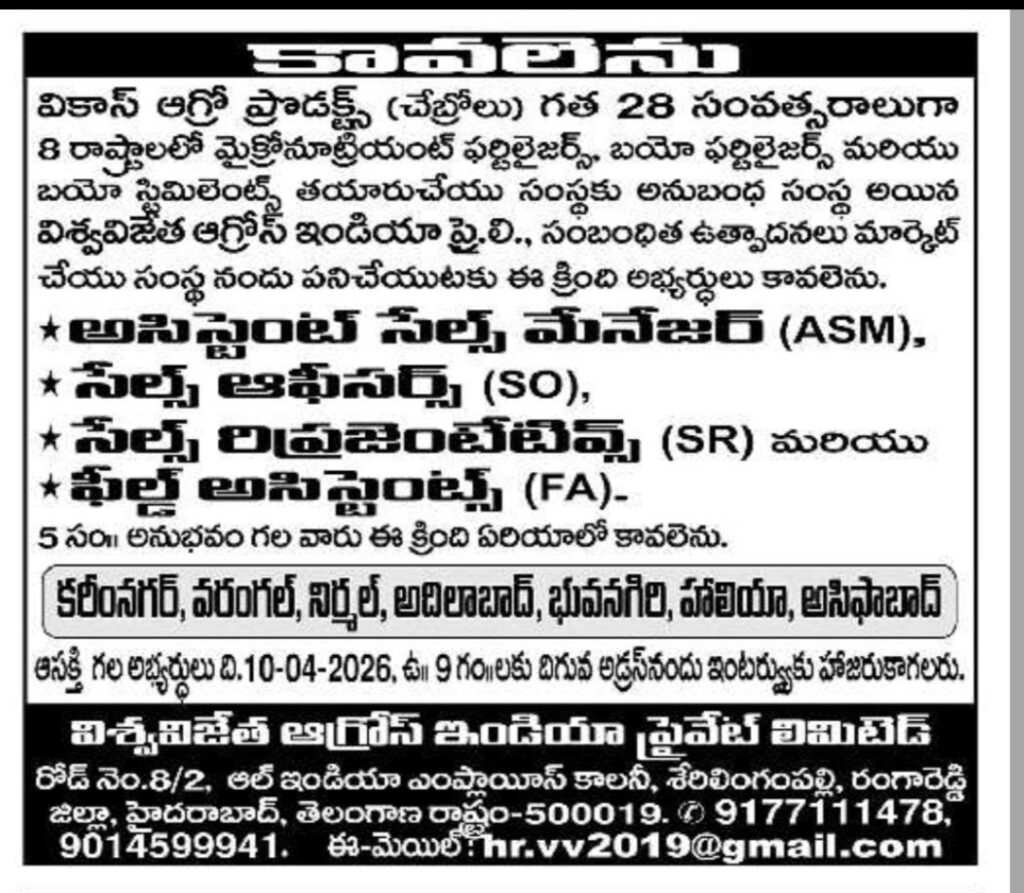 Wanted Staff at Vikas Agro Products.